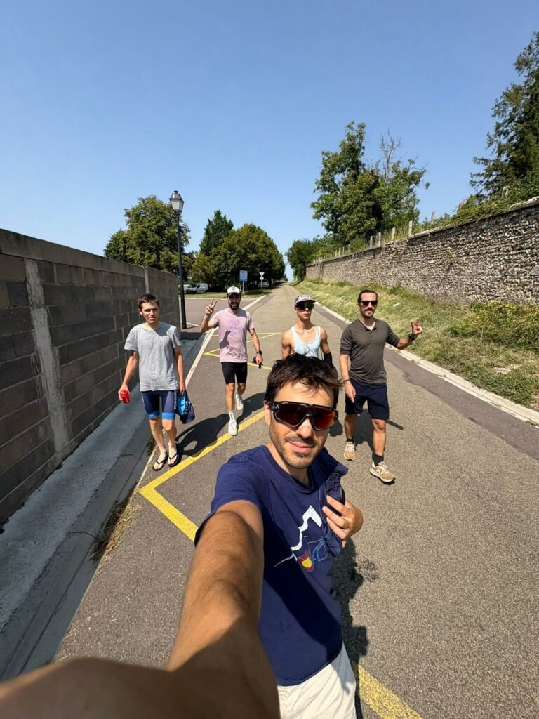 1ère étape : 80km avec 900 de D+ inaugure ces boucles. sous une chaleur estivale suffocante, Nicolas M sort le grand jeu et vient chercher une magnifique 3ème place, suivi de Paul dans le top 10, Samuele, Nicolas S et Axel finissent dans les petits groupes à l’arrière, le peloton ayant littéralement explosé au fil de la course.